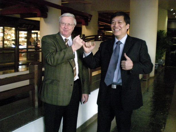 1月31日,中心主任余潇枫教授在北京同来访的世界著名学术团体罗马俱乐部总干事、前联合国副秘书长Martin Lees 先生会谈,会谈内容包括组建罗马俱乐部中国协会的可能性,美国发展模式受挫后的世界出路、中国增长的安全问题。余潇枫教授向Martin Lees 先生赠送了一套“非传统安全与现实中国”丛书,并介绍了中心近几年的研究成果和方向。Martin Lees 总干事对中国学者的研究方向和成果给予了高度赞扬,并提出在环境与资源、全球化、世界发展、社会转型、和平与安全五个方面是当前罗马俱乐部重点关注的五大问题,希望与以浙江大学为主的非传统安全研究进行课题合作。余潇枫教授向Martin先生初步介绍了即将开始的有关中国增长安全四个重要方面的研究计划,引起Martin先生浓厚兴趣,并索要了研究计划提纲。晚上,余潇枫教授代表浙江大学宴请了Martin Lees 总干事,陪同出席的有来自北京大学、国防大学、上海政法学院、广东共赢经济学高等研究院的学者。Martin Lees 总干事表示:将在适当的时候访问浙江大学非传统安全中心。
