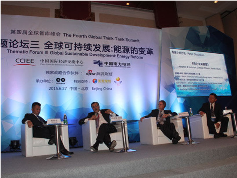 “第四届全球智库峰会”于2015年6月27日在北京举行,本届智库峰会以“全球可持续发展:2015年后新路径”为主题,围绕能源等8个议题进行了广泛交流,我中心环境与能源安全研究所副所长周章贵博士受邀参加了本届智库峰会能源专题论坛。能源专题论坛以“全球可持续发展:能源的变革”为主题,紧扣气候变化在内的全球性问题、发展与环境矛盾、“一带一路”能源合作展开了深入探讨,推进各国间的能源合作,积极推动可再生能源引领能源消费革命,实现共同的可持续发展等观点获得与会嘉宾广泛认可。